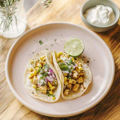 They’re crispy, flavorful, a little smoky, and seriously satisfying– everything you want in a street taco. The tofu is crumbled and roasted until golden, tossed in a simple homemade seasoning blend, and paired with fresh toppings like pickled onions, creamy avocado, and a squeeze of lime. It’s the kind of plant-based dinner that even meat-eaters go back for seconds of.